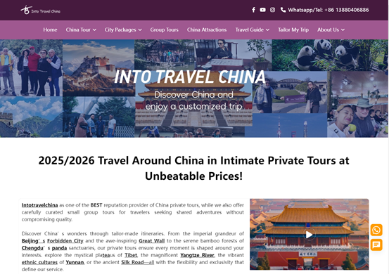 Founded in 2015, IntoTravelchina is a cultural experience travel company specializing in inbound tourism. It owns the China itinerary planning brand, IntoTravelChina, and the China customized tour brand, IntoExplore.By breaking cultural barriers, the company serves individual travelers, corporate groups, and educational institutions. Through these immersive experiences, IntoTravelChina fosters meaningful cross-cultural exchange and allows China’s stories to reach the world, one journey at a time.